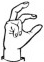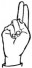 На ћирилици написано САНДРА КАЗИМИРОВИЋ састоји се из 17 слова [?]. Исписано ћириличном једноручном азбуком за глувонеме: